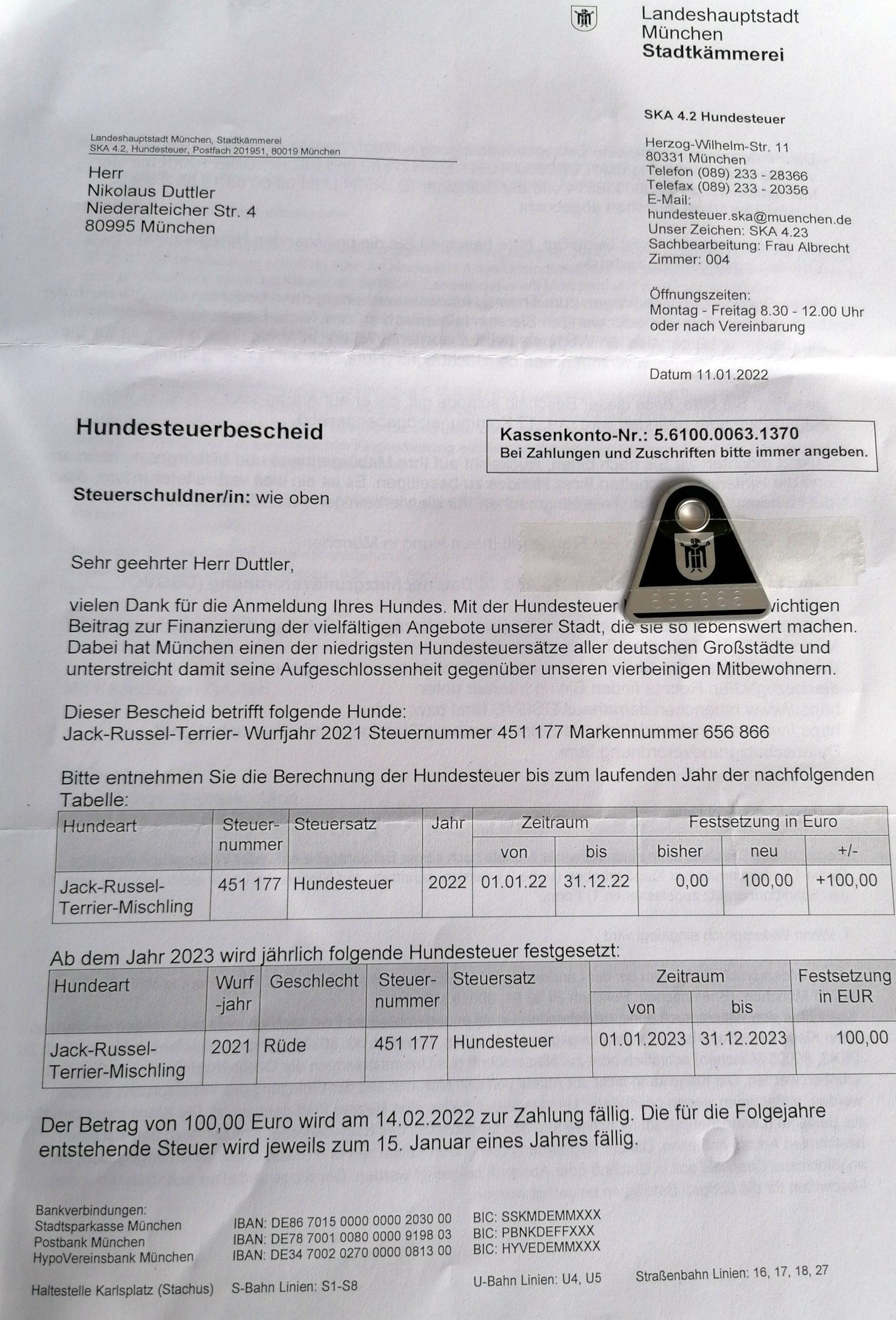 Steuerplakette der Stadt München :